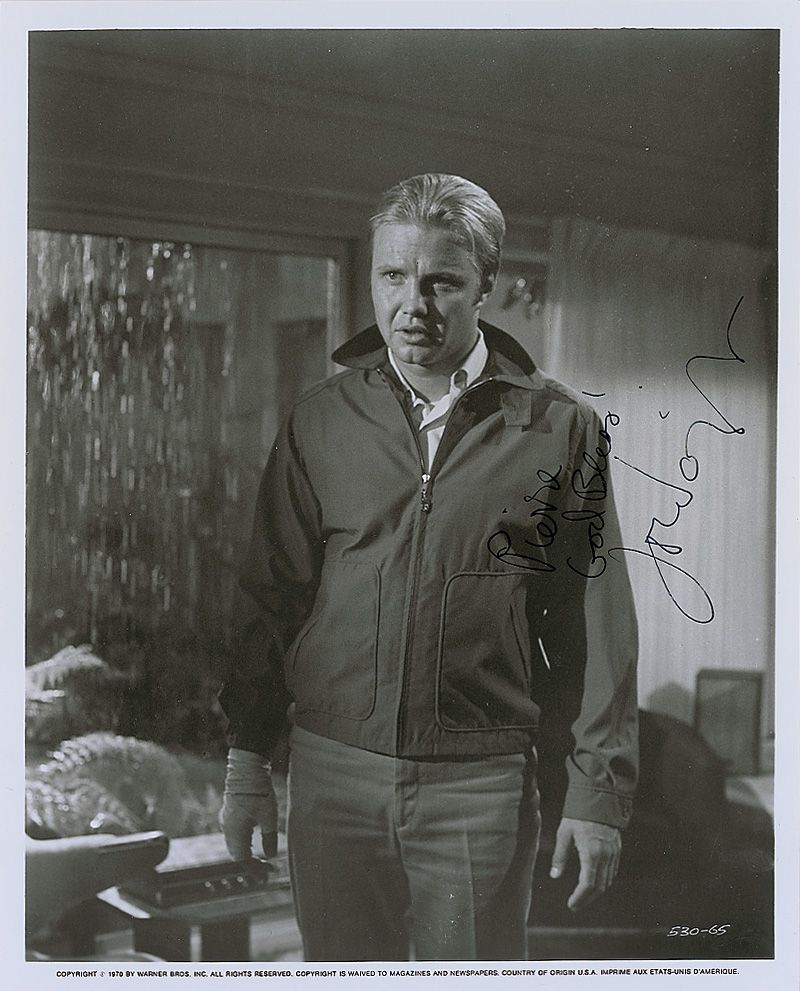 Glossy 8 x 10 Warner Bros. publicity photo for Voight in The All-American Boy, signed and inscribed vertically in-person in black felt tip “Pierre, God Bless! Jon Voight.” In fine condition.