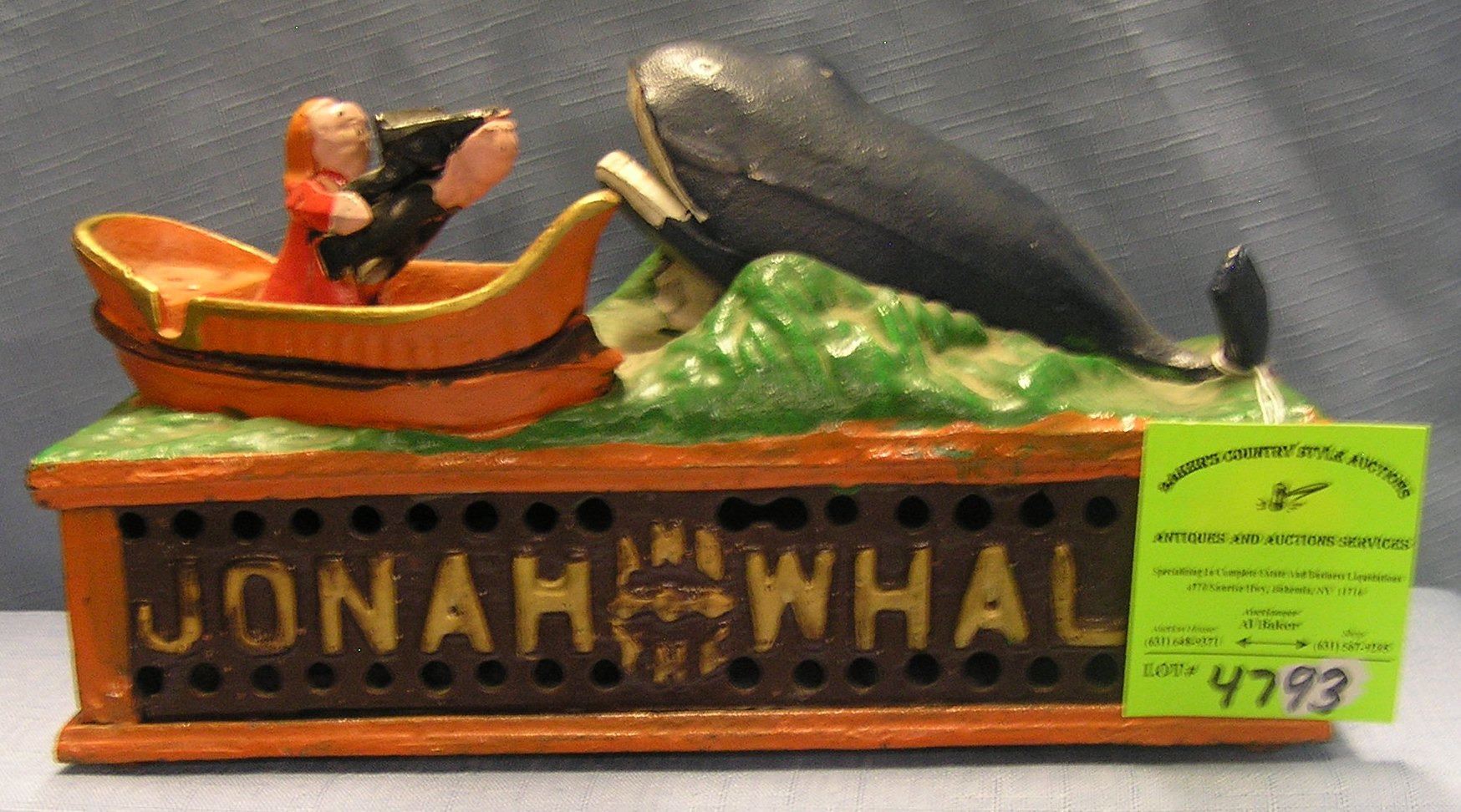 Vintage all hand painted cast iron Jonah and the Whale mechanical bank circa 1960’s $350.00-$400.00
