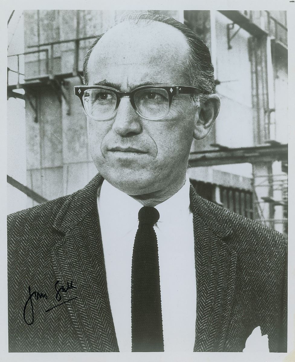 Glossy 8 x 10 photo of Salk posing outdoors, signed in black felt tip. In fine condition.