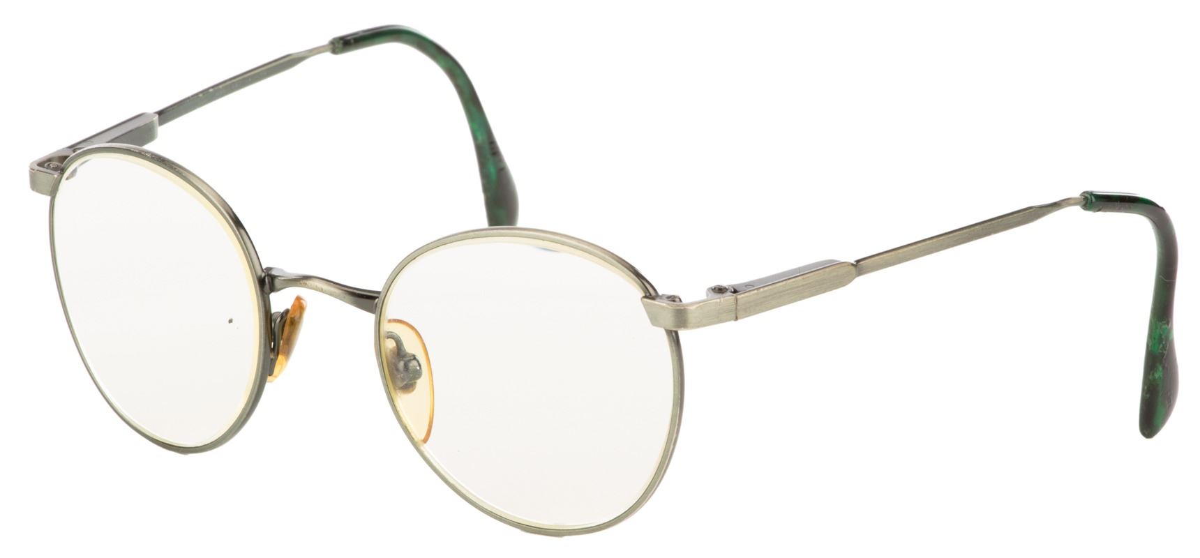 518. Jonathan Lipnicki "Ray Boyd" signature screen used glasses from Jerry Maguire. (TriStar, 1996) Original pair of iconic brass wireframe glasses with prescription lenses, measuring approx. 4.75 x 3 in. (folded), presented in black Gucci glasses case measuring approx. 6.5 x 2.75 x 1.75 in. Exhibiting production wear with minor surface abrasions to lenses. In very good condition. Comes with an LOA from Jonathan Lipnicki. $1,000 - $1,500
