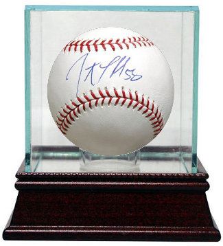 Jonathan Papelbon is a Major League Baseball closer for the Philadelphia Phillies. On August 21, 2007, Papelbon had his 30th save of the season making him the first Boston Red Sox pitcher to ever have two 30-save seasons. As of July 1, 2009, Papelbon holds the record of most saves by a Red Sox pitcher, beating Bob Stanley's previous record of 132 saves. Jonathan Papelbon has hand signed this Official Major League Baseball. MLB/Mounted Memories Holograms and Certificate of Authenticity. Note: Glass Display Case shown IS included