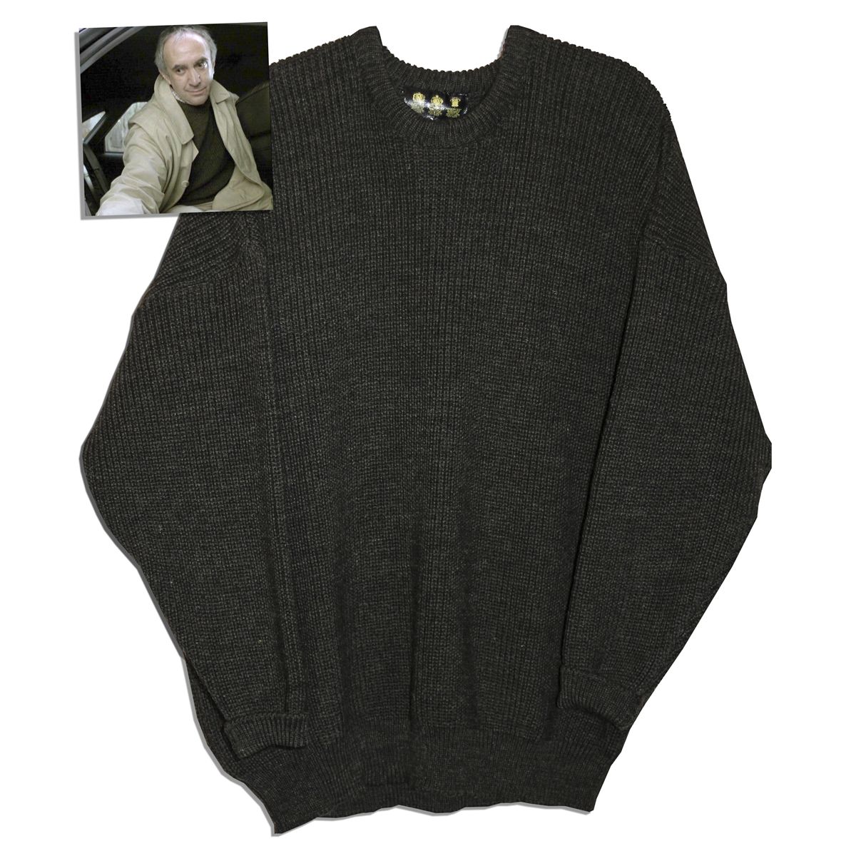 Jonathan Pryce screen-worn sweater from the 1998 spy thriller, ''Ronin''. Pryce played Seamus O'Rourke in the film opposite Robert De Niro. Costume includes a green wool Barbour brand sweater, size 48. With a COA from ReelClothes. Near fine.