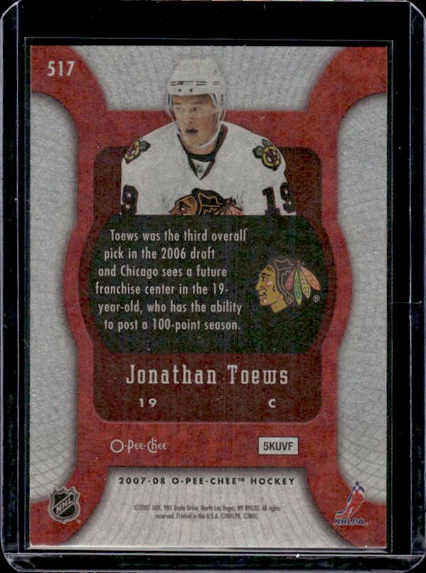 Jonathan Toews Rookie Card 2007-08 O-Pee-Chee #517