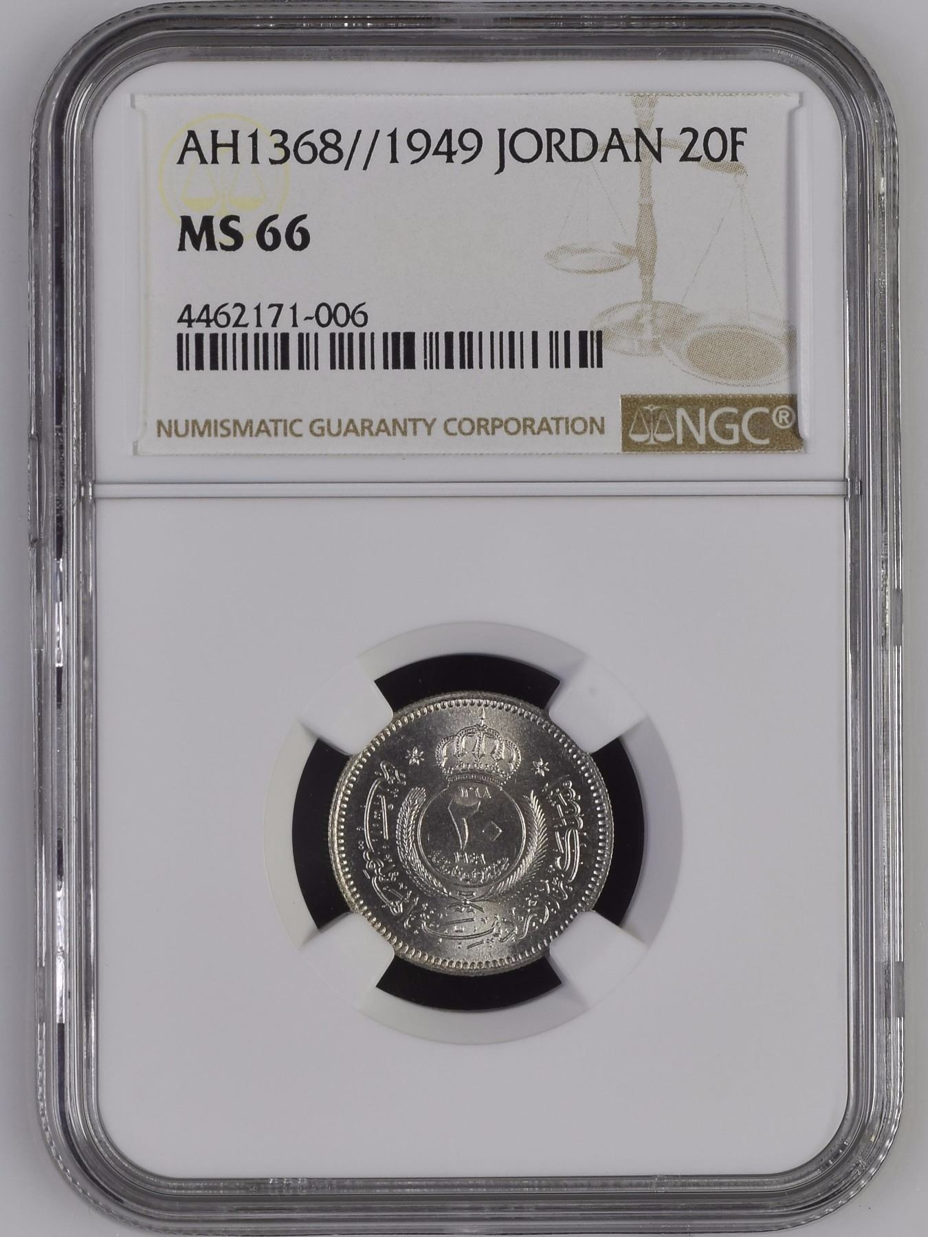 Jordan 1368//1949 20 Fils NGC MS66 *ONLY 4 GRADED*