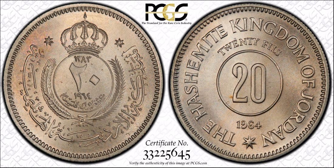Jordan 1964 20 Fils PCGS MS68 *HIGH GRADE* *ONLY 1 GRADED*