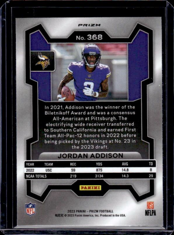 Jordan Addison Purple Pulsar Prizm RC 2023 Prizm #368