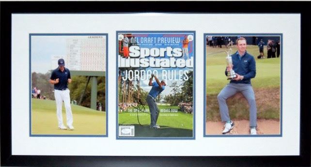 This is a signed Sports illustrated collage signed by Jordan Spieth. The dimensions are approximately 28 by 16. This is a JSA authenticated piece. This item comes with a Certificate of Authenticity from a third party authenticator. This Certification of Authenticity does not imply that the item will be certified by any other rival authentication companies. The accompanied certification is the only certification the auction company can confirm. These items are being sold as collectable pieces and there is no guarantee that this item can be resold on any online marketplace. Each of these companies has their own policies and politics.