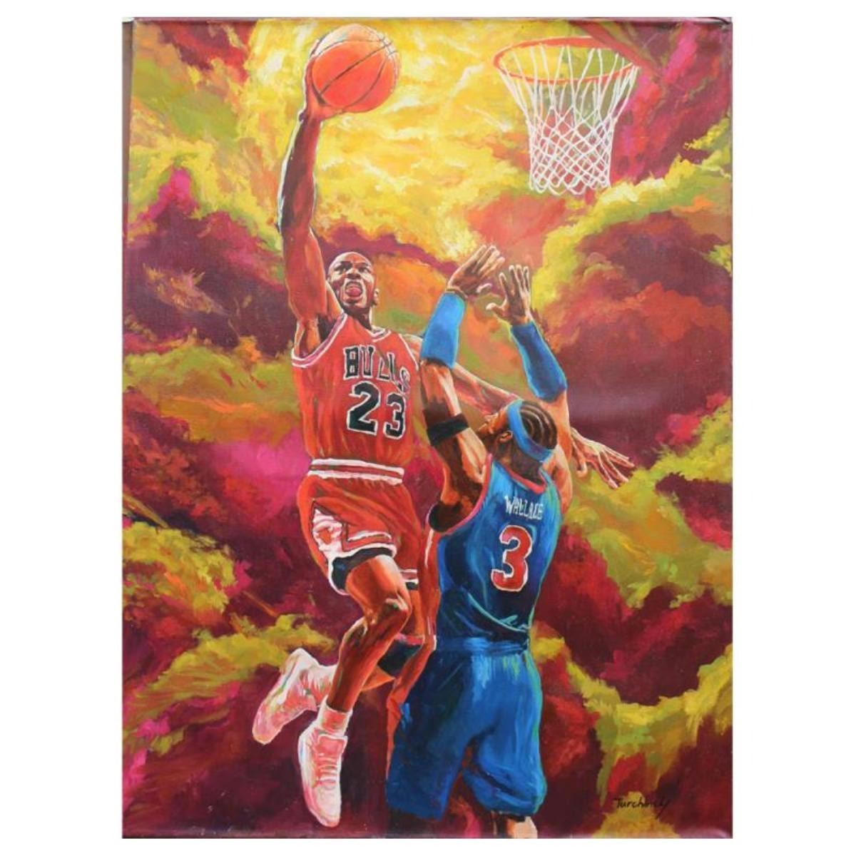 "Jordan vs. Wallace" is an original Oil on Canvas by Turchinskiy Dmitriy. The piece is hand signed and comes with a Certificate of Authenticity. Measures approximately 23.5" x 31".