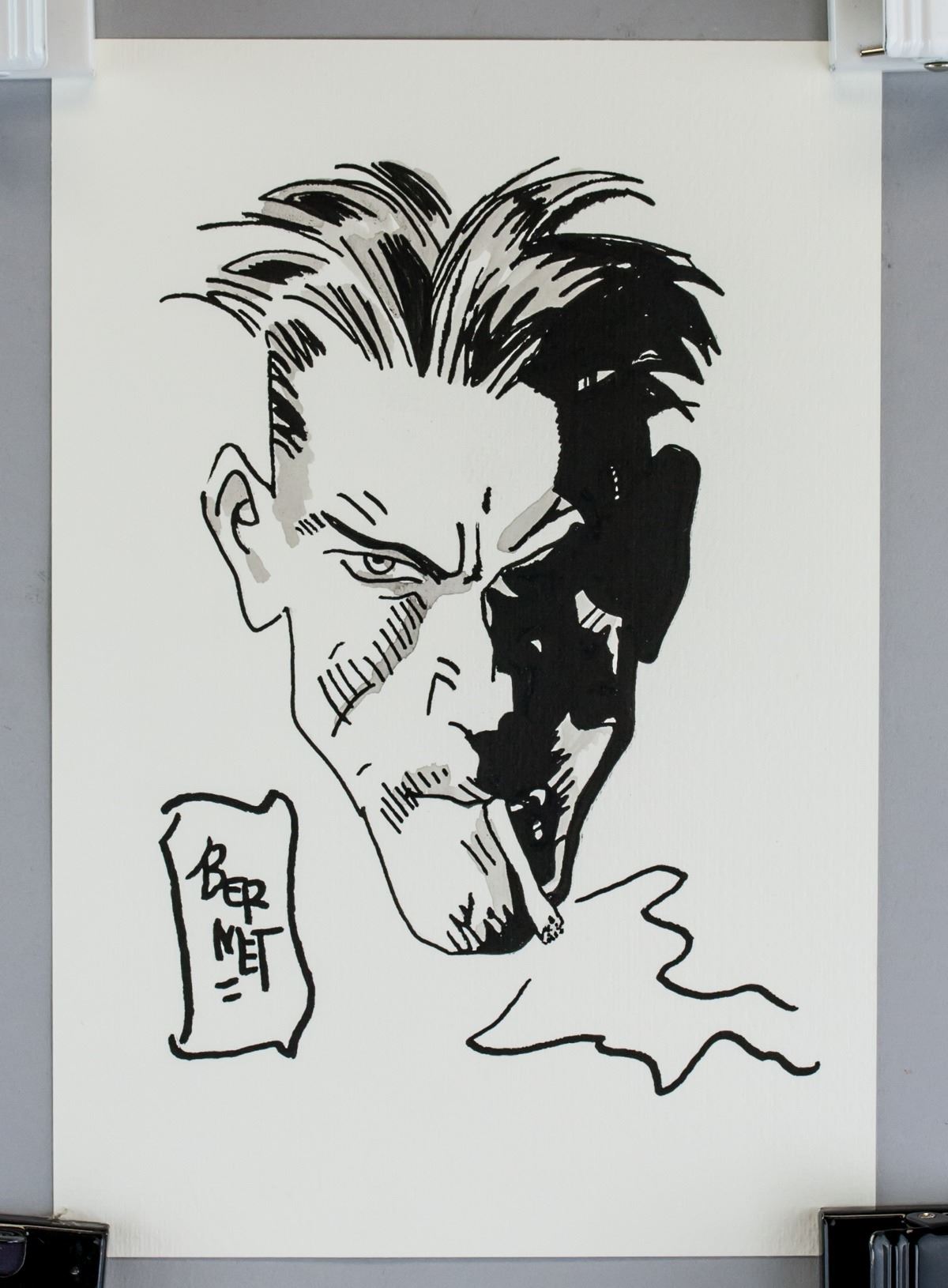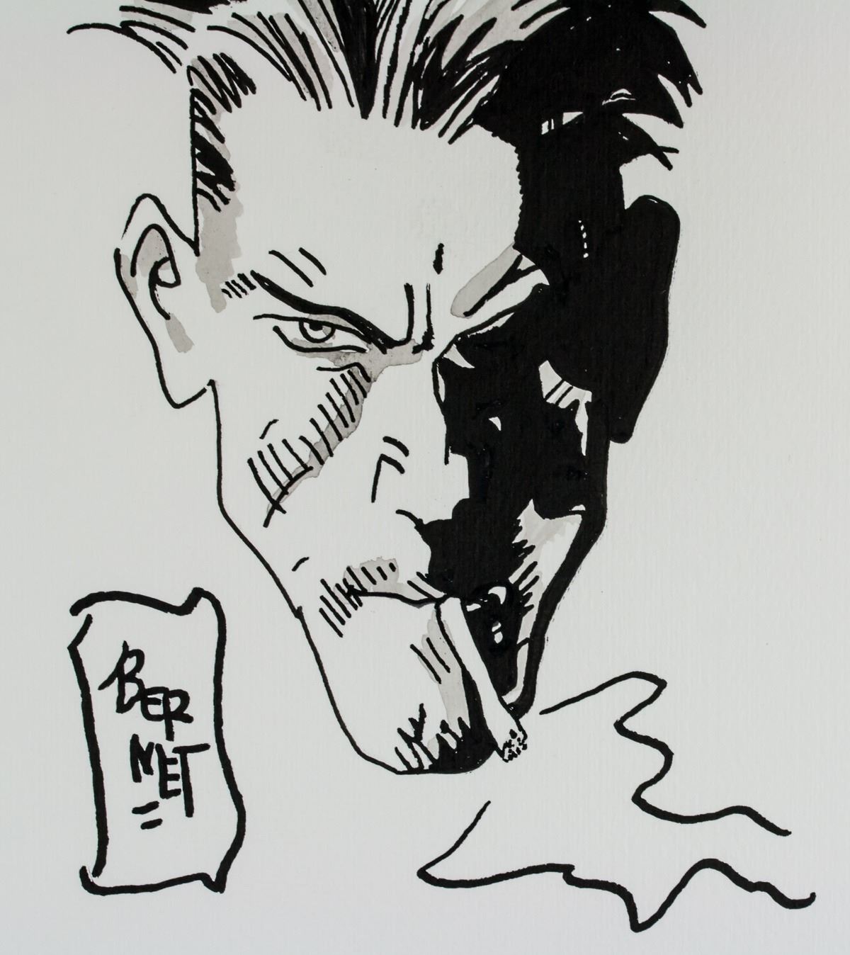 Ink on paper. Featuring a portrait. Signed BERNET on the lower left corner. Attributed to Jordi Bernet (born 1944, Spanish). 23 x 16 cm (9.1 x 6.3 inches). PROVENANCE: Southern Ontario estate