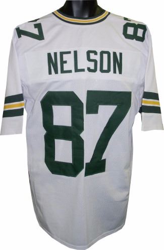 Building on strong outings in the 2010-11 playoffs against Atlanta and Chicago, Nelson caught a 29-yard touchdown pass on third-and-1 with William Gay covering, for the first score of Super Bowl XLV. Nelson struggled some and made no more touchdowns. However, he recovered from a dropped pass early in the fourth quarter to make a 38-yard play on the next down, taking the Packers to the Steelers' two-yard line. Nelson was the top receiver of the game with 9 receptions for 140 yards (both career highs), while also gaining 19 more yards on a kick return.This is a Jordy Nelson Green Bay Packers unsigned White unlicensed custom-prostyle jersey with twill stitched nameplate and numbers. perfect for autograph or to wear! Size XL