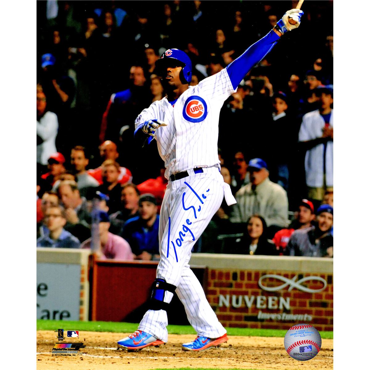 Jorge Soler signed Chicago Cubs action 8x10 photo. Item comes with a Schwartz Sports Memorabilia tamper-proof numbered hologram and Certificate of Authenticity which can be verified online.