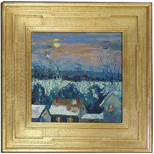 "Jos. (Joseph) Barrett oil on canvas ""River Moon Delaware"" in artist's frame; signed upper right; ""Lahaska PA"" and title on reverse; 12 inches x 12 inches (no visible defects)"