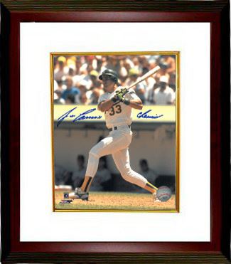 In 1985, Jose Canseco won the Baseball America Minor League Player of the Year Award, and was a late season call-up for the Oakland A's, playing in 29 games in the major leagues in 1985. He gained notoriety in 1986, his first full season, being named the American League's Rookie of the Year, with 33 home runs and 117 runs batted in. In 1988, Canseco became the first player in major league history to hit at least 40 home runs and steal at least 40 bases in the same year, by hitting 42 home runs and stealing 40 bases. Jose Canseco has hand signed this Oakland A's 8x10 Photo with Chemist inscription. Certificate of Authenticity from Athlon Sports. Custom White Mat and Premium Mahogany Frame as shown.