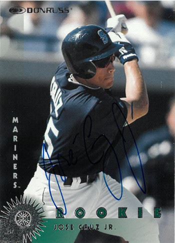 Jose Cruz Jr. was a first round pick, 3rd overall, for the Seattle Mariners in the 1995 amateur draft and began his major league career on May 31, 1997. Jose Cruz Jr. has hand autographed this Seattle Mariners 1997 Donruss Rookie Baseball Card. Certificate of Authenticity from Athlon Sports Collectibles.