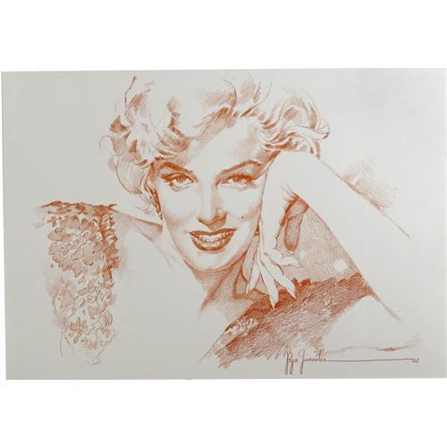 <B>Jose Gonzalez - Marilyn Monroe Portrait Illustration Original Art (2002). </B></I> Jose Gonzalez has drawn a deliciously detailed portrait of movie star Marilyn Monroe, as she appeared in the 1950s and 1960s. The degree of finish in this work is breathtaking. Gonzalez even captured Marilyn's "bedroom eyes." This colored pencil portrait is the work of a consummate draftsman. The overall size of this portrait measures approximately 19.5" x 14", and the art is in Excellent condition. A fantastic piece for both fans of Marilyn Monroe and fans of sensational drawing! <BR><BR><b>Shipping:</b> Flat Material, Large (<a target="_blank" href="http://www.heritageauctions.com/common/shipping.php">view shipping information</a>)