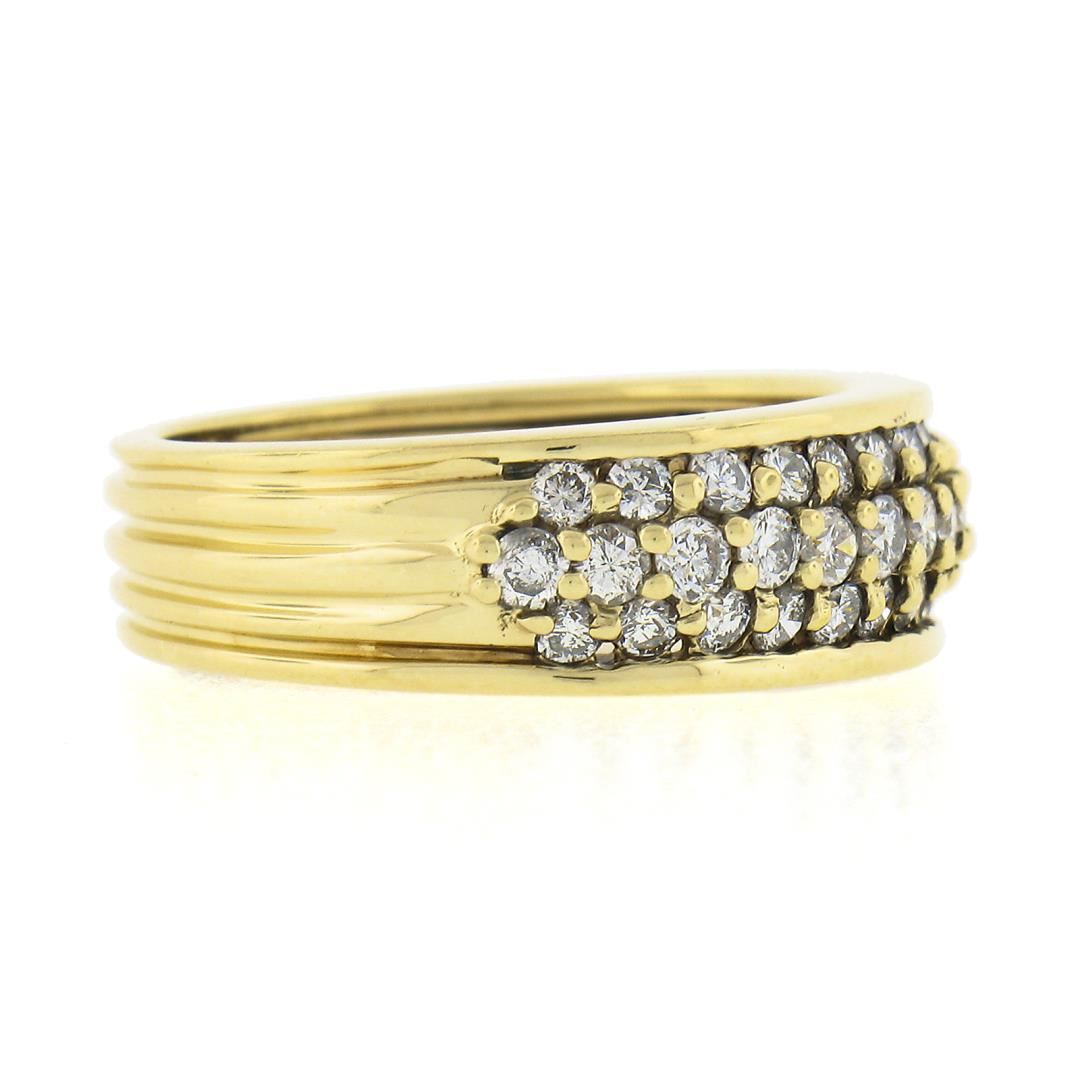 A solid 18k yellow gold band ring by Jose Hess, with 43 round cut natural diamonds (G/H - SI1/SI2 ; 0.90ctw). The ring is size 6.0, weighs a total of 5.94 grams, and measures 6.8mm wide.