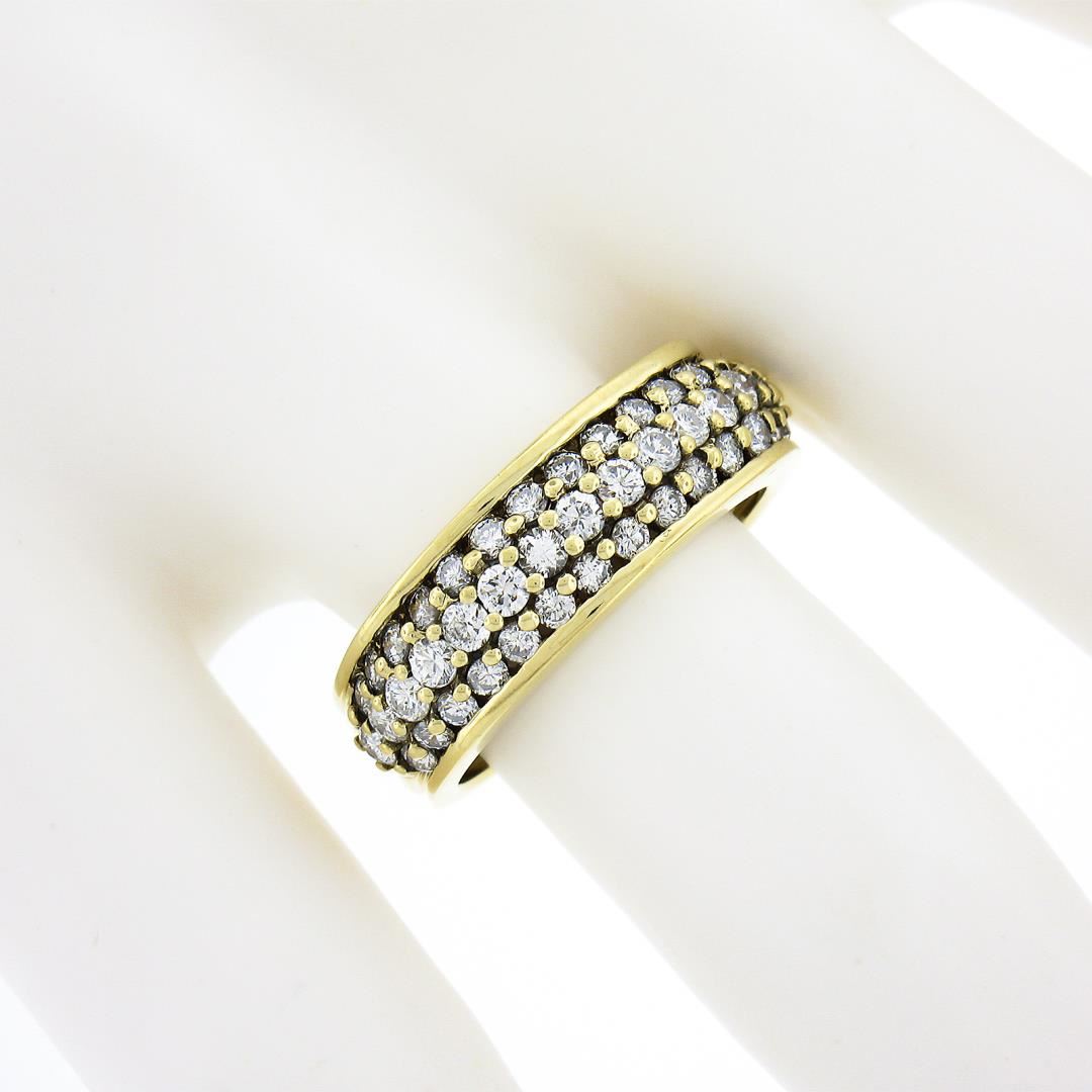 A solid 18k yellow gold band ring by Jose Hess, with 43 round cut natural diamonds (G/H - SI1/SI2 ; 0.90ctw). The ring is size 6.0, weighs a total of 5.94 grams, and measures 6.8mm wide.