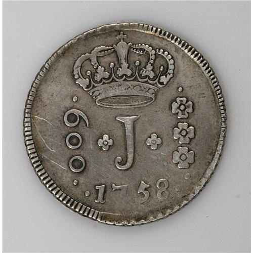 Jose I 600 Reis 1758-R, KM187, nice toned AVF, possible