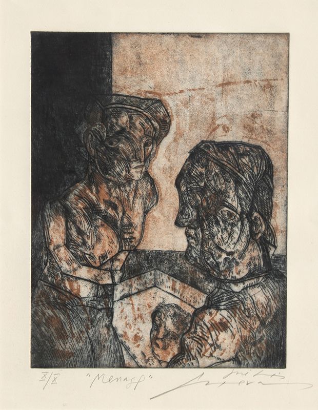 Jose Luis Cuevas, Menage, Aquatint Etching