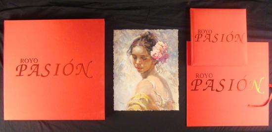 Title: Royo: PasionEdition: FirstYear: 2000Publisher: Washington Green Fine Arts Printing: Valencia, SpainSize: Hard cover is 12 1/2 inches squareCondition: Excellent For anyone who is moved by the romantic images of Royo's passionate vision, this is wonderful set. A print worthy of a fine frame, and a book equally worthy of a place of distinction in an art connoisseur's library. Artist BiographyIt's easy to see Royo's (1945- ) early influences-Monet, Renoir, Velasquez, Goya, and Joaquin Sorolla- but the Valencia born artist has perfected a technique and style all his own. Jose Royo has exhibited in London, Brussels, Copenhagen and Paris, and has participated in the International Geneva Art Fair. His work holds pride of place in many prestigious public and private collections, including King Juan Carlos and Queen Sofia of Spain.