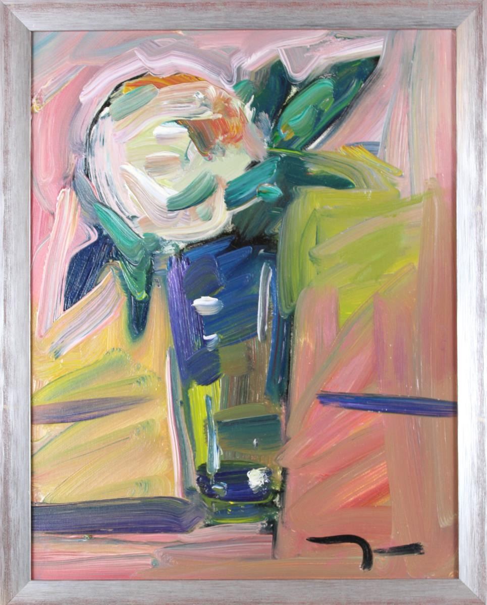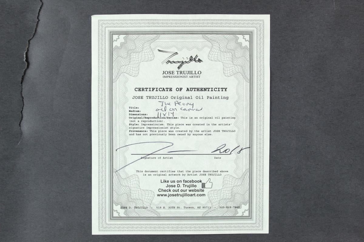 Modernist contemporary "The Peonys" still life. Signed and inscribed with certificate verso.