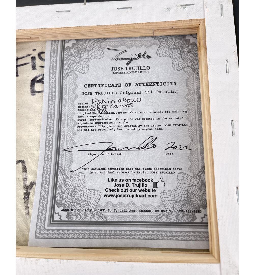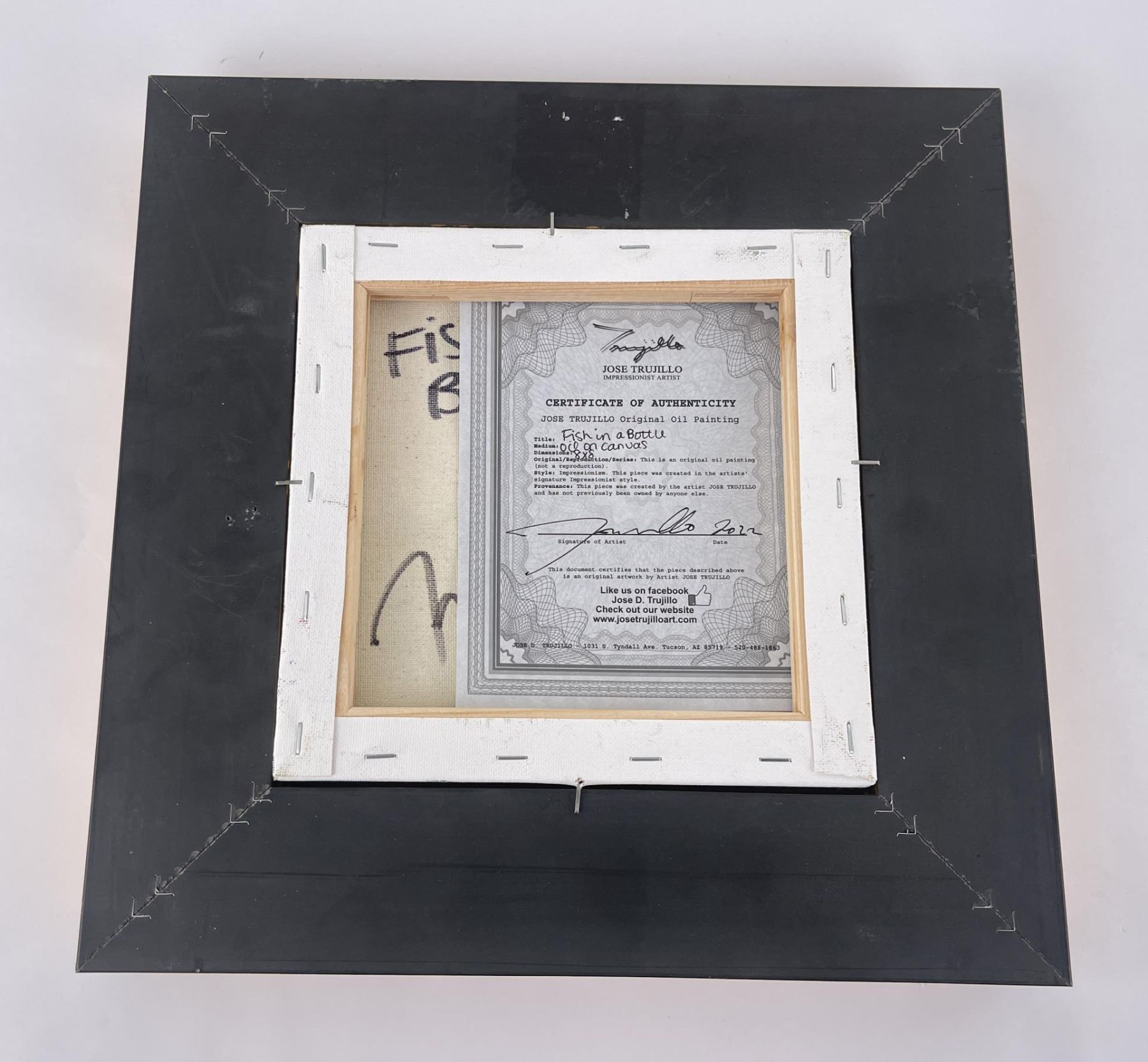 8' by 8" unframed, 13" x 13" framed. Oil on canvas. Includes COA. Jose Trujillo (1982-Present) Tucson Arizona.
