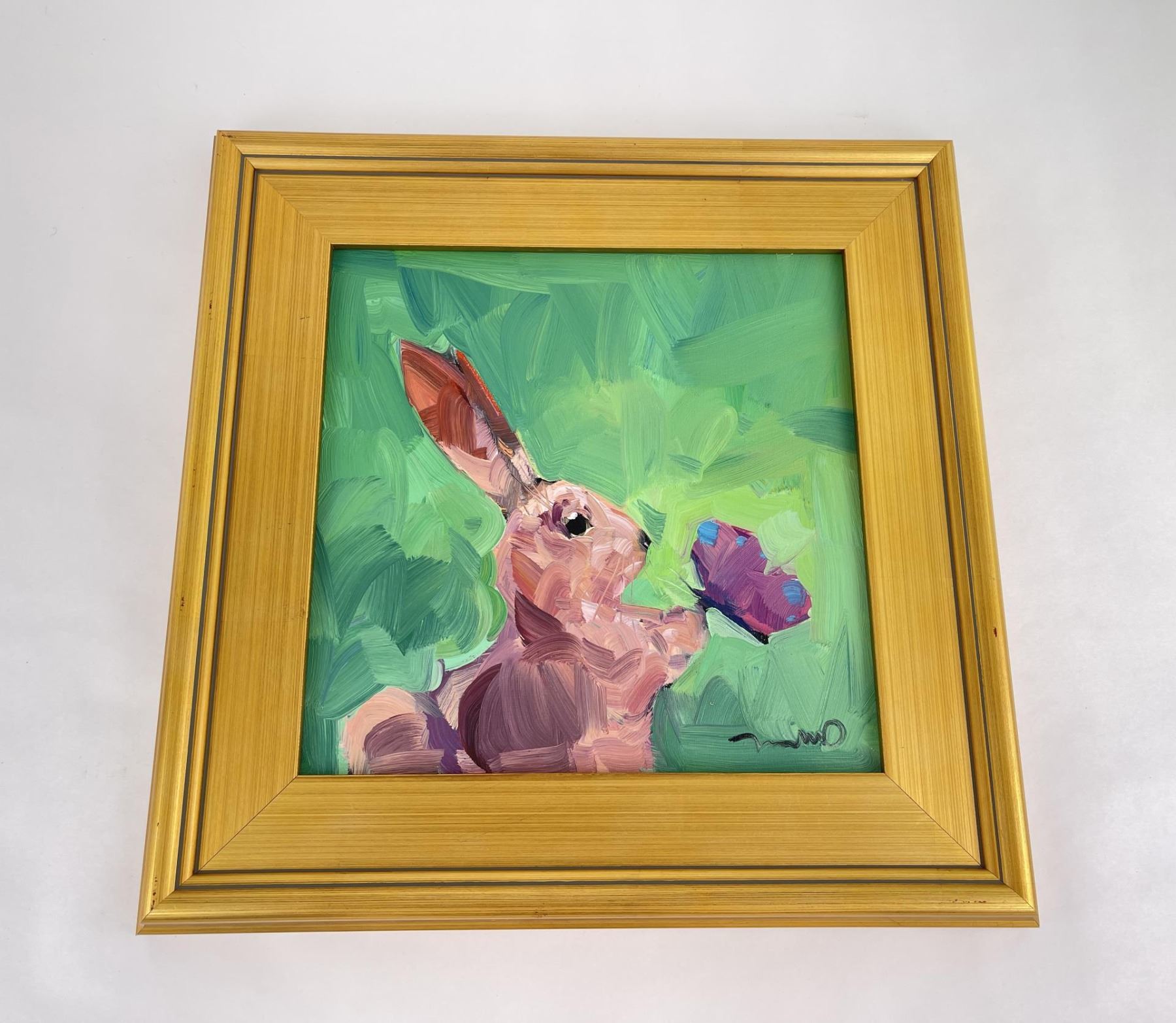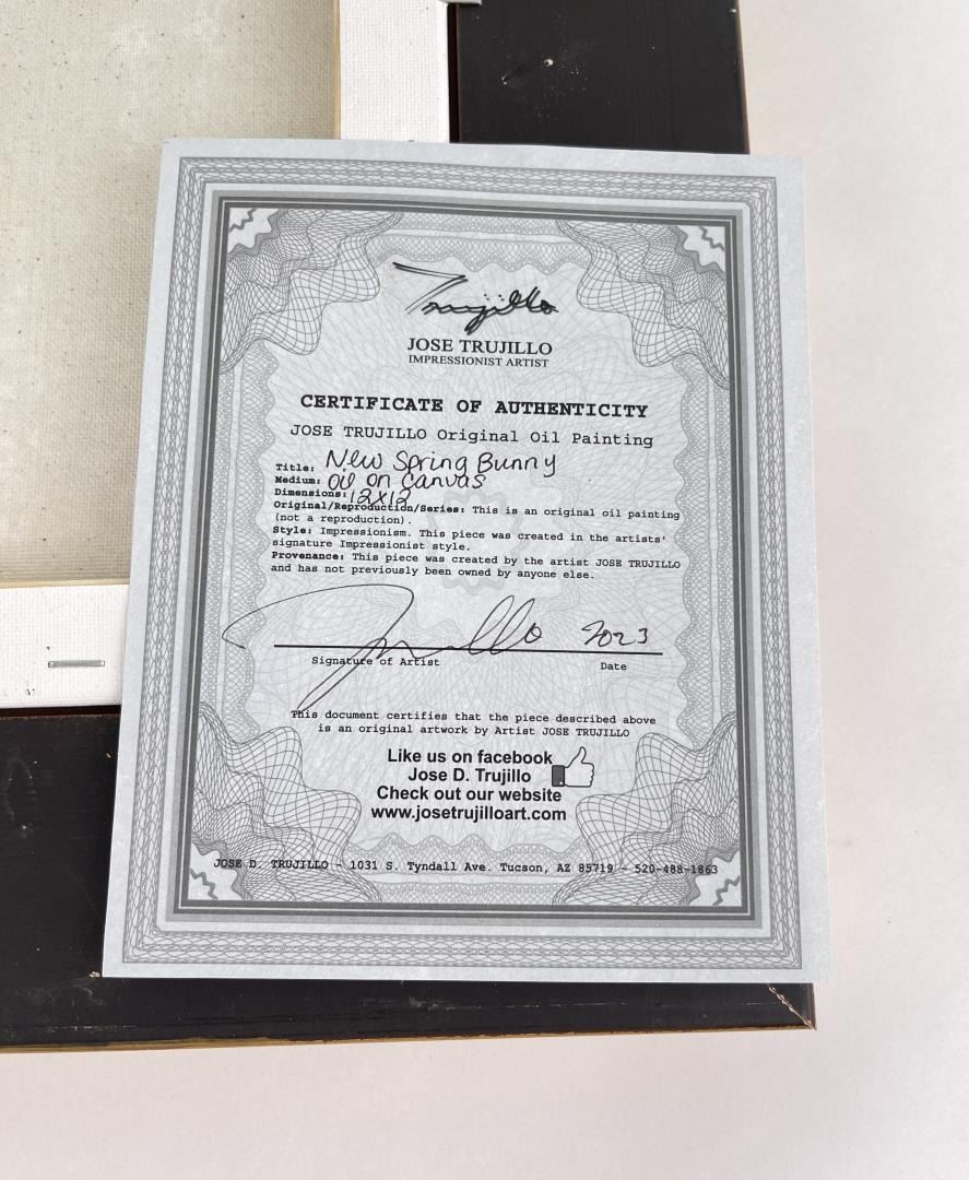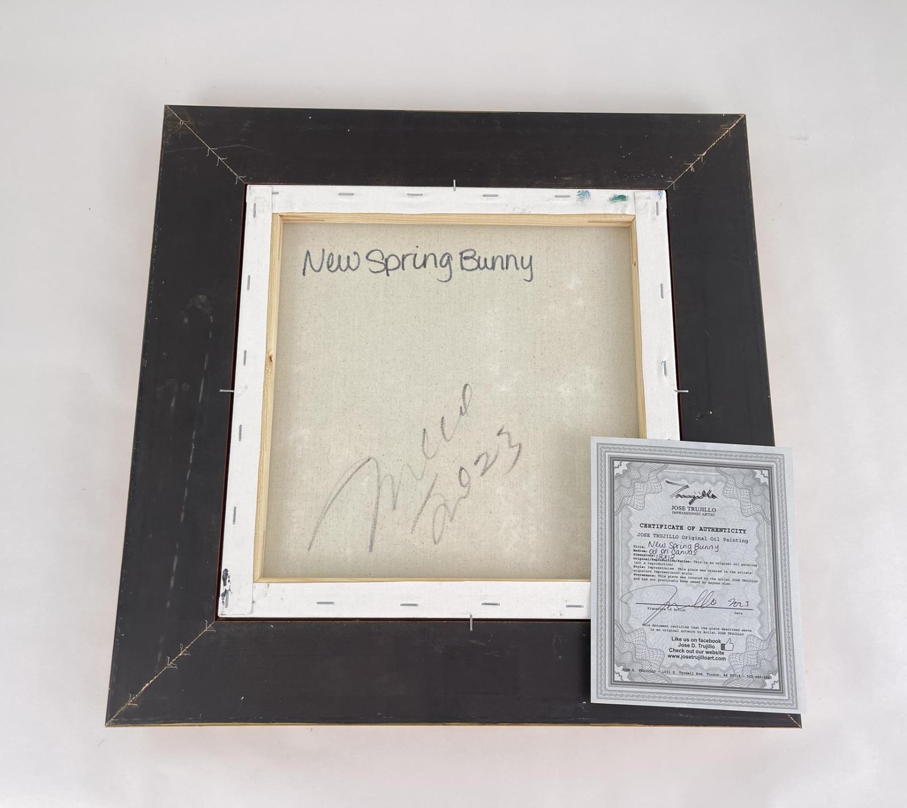 17" by 17" framed. Title is New Spring Bunny. Jose Trujillo (1982-Present) Tucson Arizona.