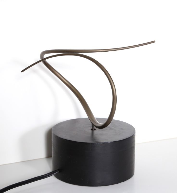 Medium: Rotating Forged Bronze Rod Sculpture on Wooden Base, Electric Motor