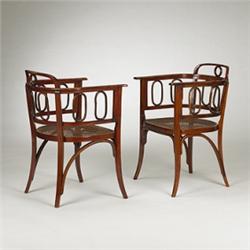 Josef Hoffmann armchairs and settee J & J Kohn Vienna, c. 1905 bentwood, caning 42"w x 18"d x 35"h Comprising two chairs and settee in bentwood with original caned seats. Provenance: B.C. Holland, Chicago Private collection, Chicago