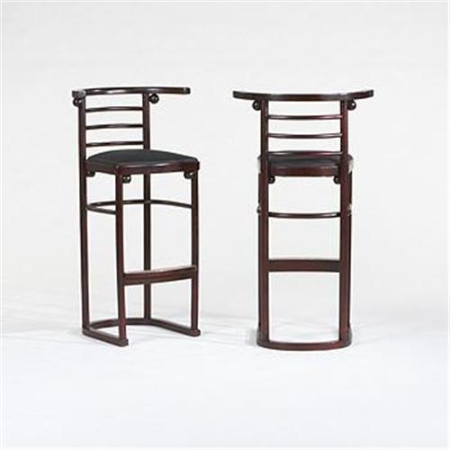 Josef Hoffmann bar stools, pair Thonet Austria, c. 1965 mahogany, leather, brass 23 w x 18 d x 41 h inches