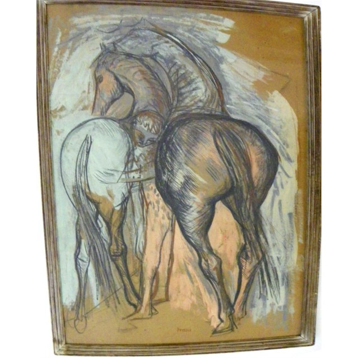 Josef Presser (1907-1976 Mass.) Two Horses and a Nude, mixed media, 46 1/2" x 29 1/2", signed lower center, framed under glass 49" x 32 1/2" Please read our terms of sale.