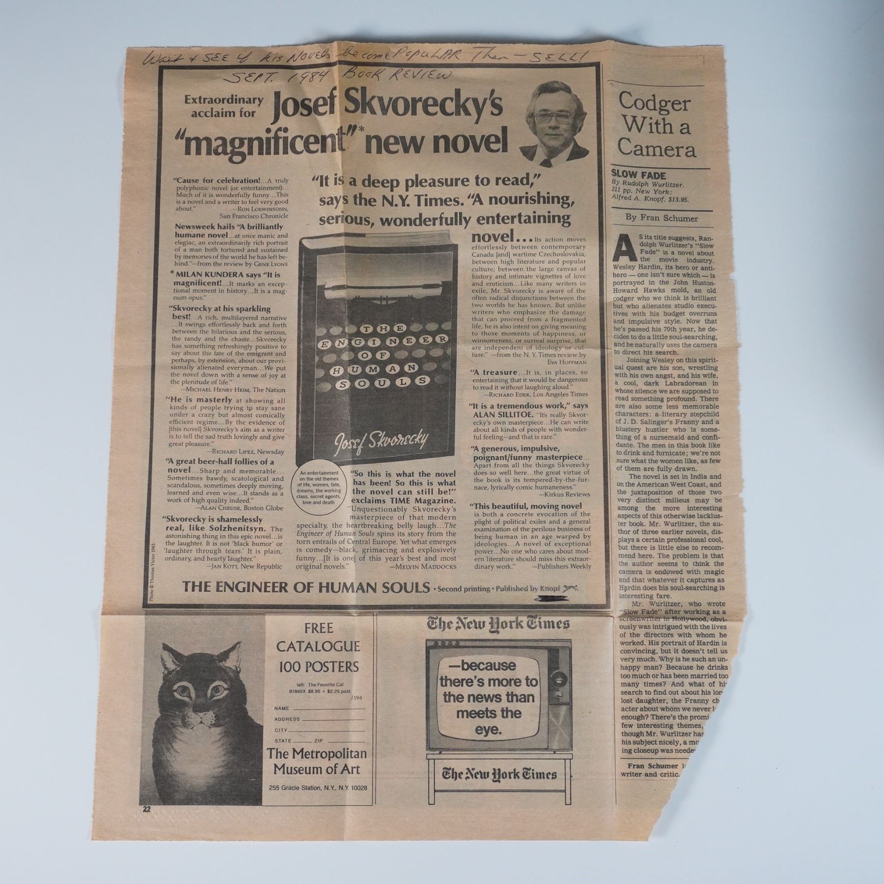 A rare first edition of Sedmiramenny SvÃcen by Josef Skvorecky, written in Czech. Published in 1964, with illustrations by Frantisek HudecÄ›k. This important work, originally published in Czechoslovakia, explores themes of history, identity, and oppression, reflecting Skvorecky's signature narrative style. The book is hand-signed by Josef Skvorecky on the dedication page. Includes contemporary newspaper clippings related to Skvorecky's literary acclaim, including a 1984 review of his work. Bound in its original green and black hardcover design, the book remains a significant piece of Czech literary history.