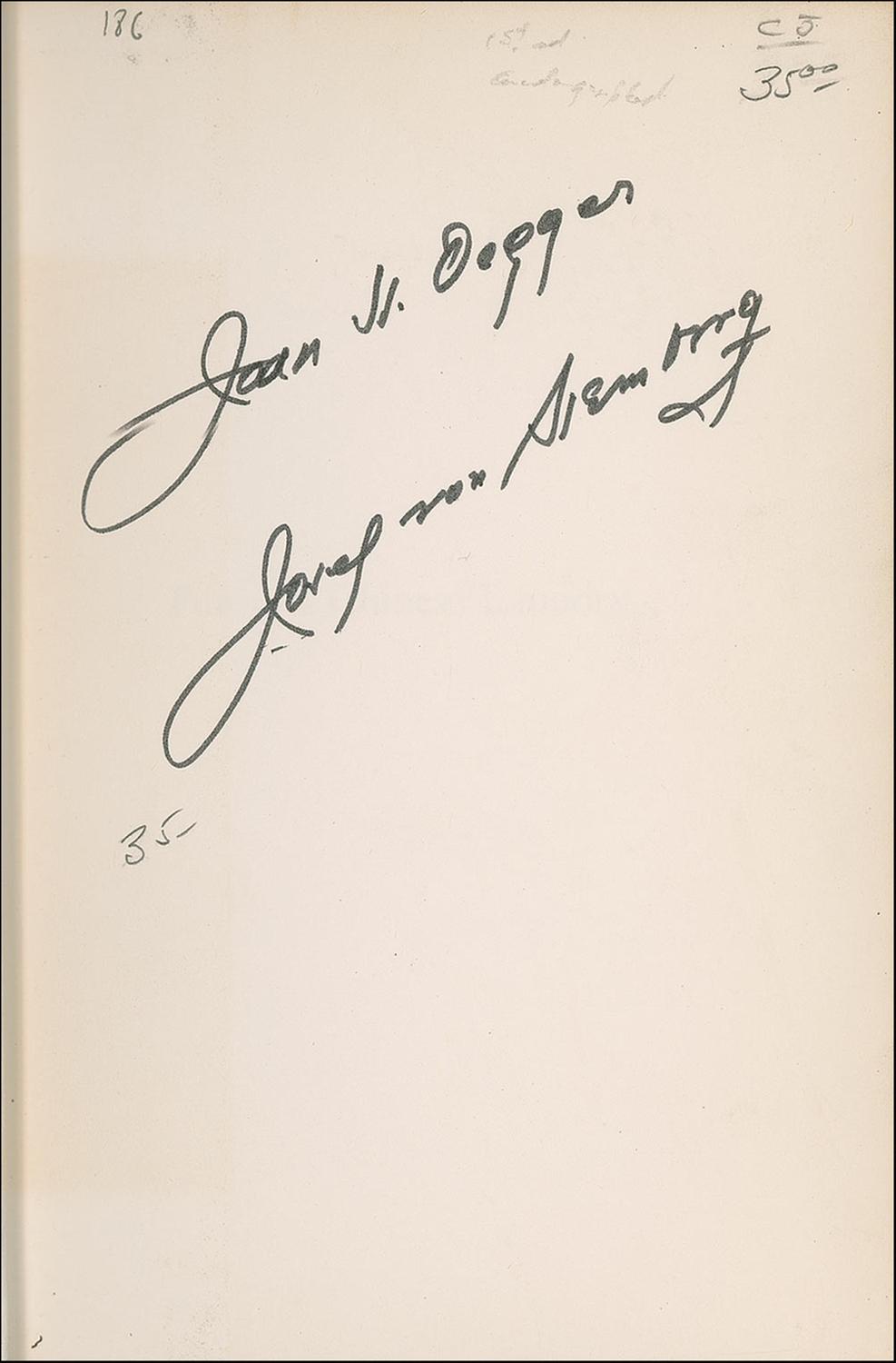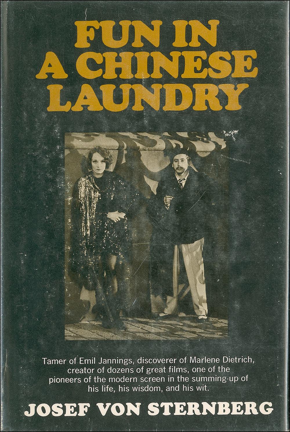 Enigmatic and important Hollywood director credited with polishing Marlene Dietrich into a glamorous, sensuous star. He directed her in the masterpiece Blue Angel. Signed book: Fun in a Chinese Laundry. First edition, first printing. NY: Macmillan Company, 1965. Hardcover with dustjacket, 5.75 x 8.5, 348 pages. Signed and inscribed on the first free end page. Several pencil notations to signed page, a bit of light soiling to covers, and some light wear to dustjacket, otherwise fine condition.