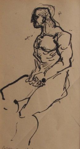 Joseph Alessandri, Ink Drawing, (8018) Joseph Alessandri, Ink Drawing, Figure, 7-3/4" x 4-1/4, Pencil Signed Lower Left,