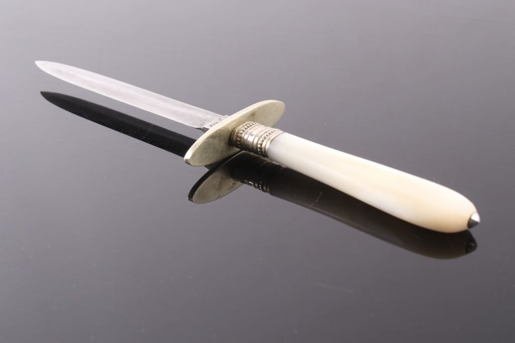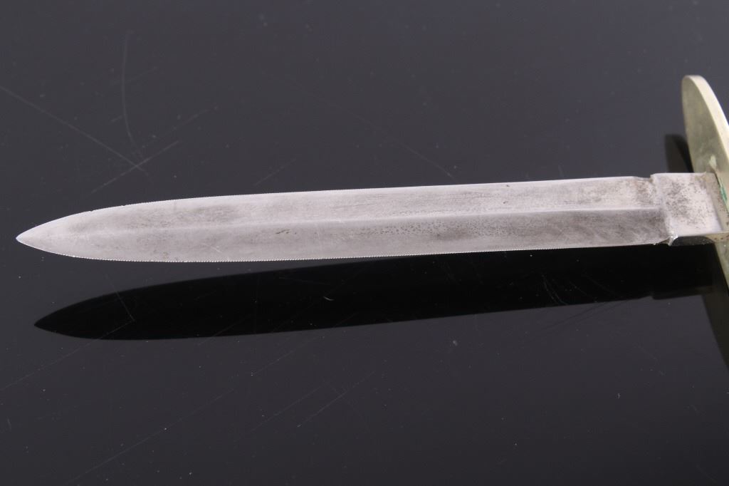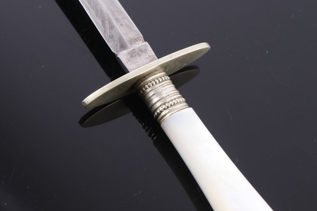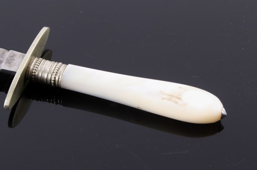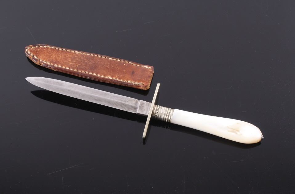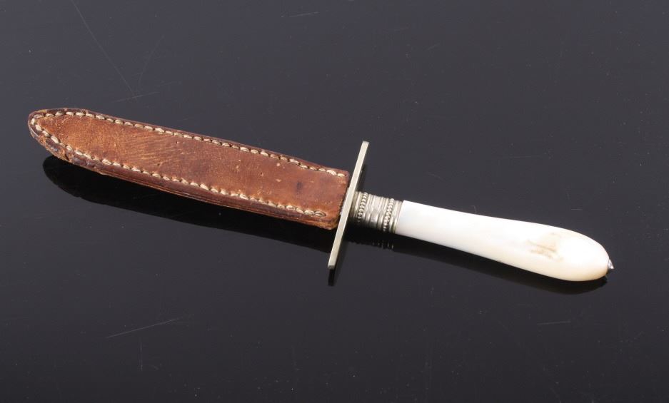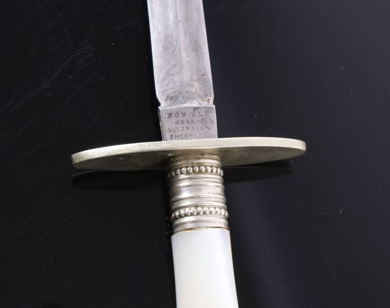 Included in this lot is a Joesph Allen & Sons, Non XXL garter dagger, antique blade knife with a mother of pearl handle. This piece was made around the 1890's by the famous Joseph Allen & Sons in Sheffield, England. Sheffield made knives always played a big part in American history. From the Gold Rushes in California and Yukon to the battles of the Civil War—Sheffield Bowies and daggers were hugely popular in every corner of the United States. This knife is in great condition and it measures 7" by 1 3/4". The blade measures 3 1/2" long.