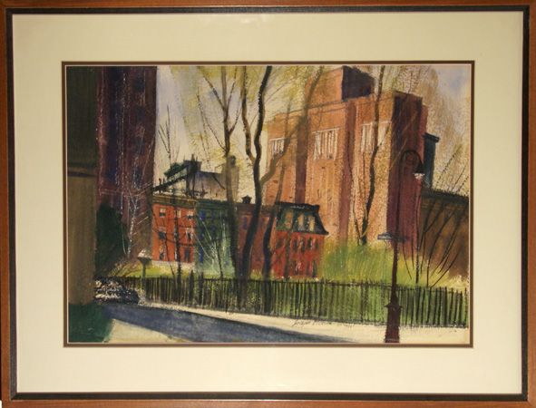 Joseph Barber, City Street Scene, Pastel Drawing