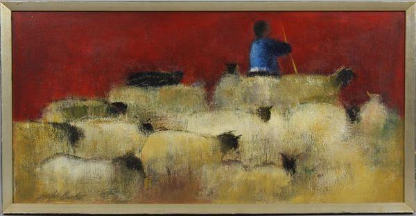 Joseph Barber, Navajo shepardess, o/b, 15" x 30", signed. Good condition.