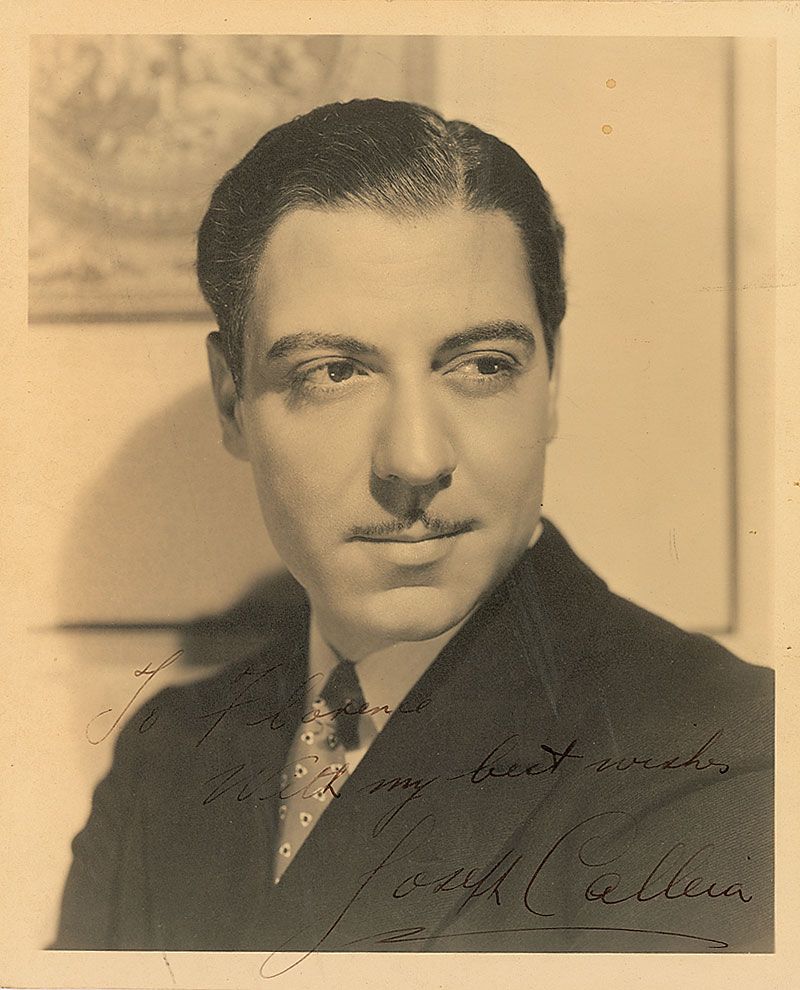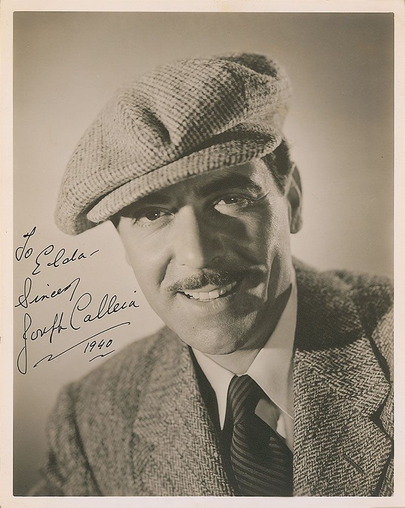 Menacing character player of Hollywood films (1897–1975), often in darkly mysterious roles. Two vintage matte-finish publicity portraits, approximately 8 x 10, each signed and inscribed in fountain pen, one dated 1940. In overall fine condition, with light surface spotting and moderate contrast to signature on one photo.
