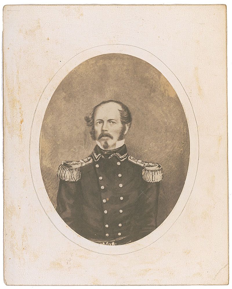Confederate general (1807–1891) who, when Virginia seceded from the Union in 1861, resigned his commission as a brigadier general in the regular army—the highest-ranking US officer to do so. Original oval albumen 2.75 x 3.5 portrait of Johnston in uniform, affixed to a 4.25 x 5.25 mount. Scattered staining to mount, otherwise fine condition.