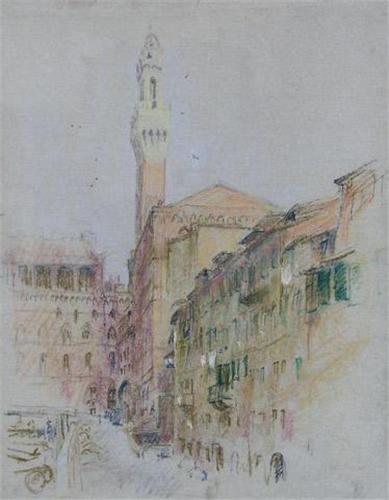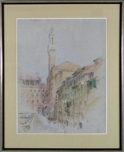 [Canadian, BCSA, CGP, RCA, b. 1918] UNTITLED; EUROPEAN STREET SCENE Pastel on paper 25 1/2 x 19 1/2 ins.