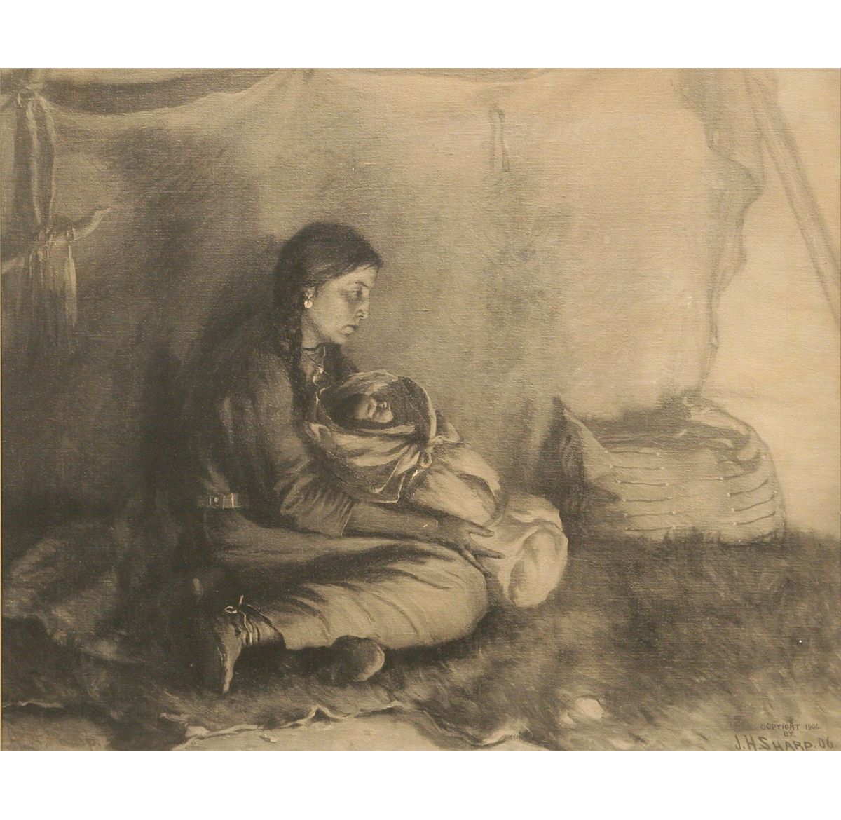 Joseph Henry Sharp (1859 - 1953). A Gift for her Brave. 15.25" x 18.75" lithograph. Original signature lower right: COPYRIGHT 1906 BY J. H. SHARP 06.