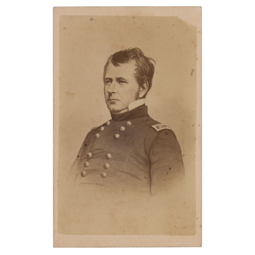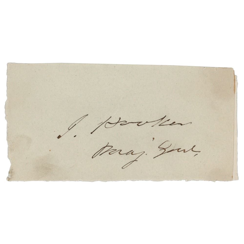 Uncommon ink signature, "J. Hooker, Maj. Genl.," on an off-white 4 x 2 slip. In fine condition, with light soiling at the corners. Accompanied by an unsigned carte-de-visite portrait of 'Fighting Joe' in uniform.