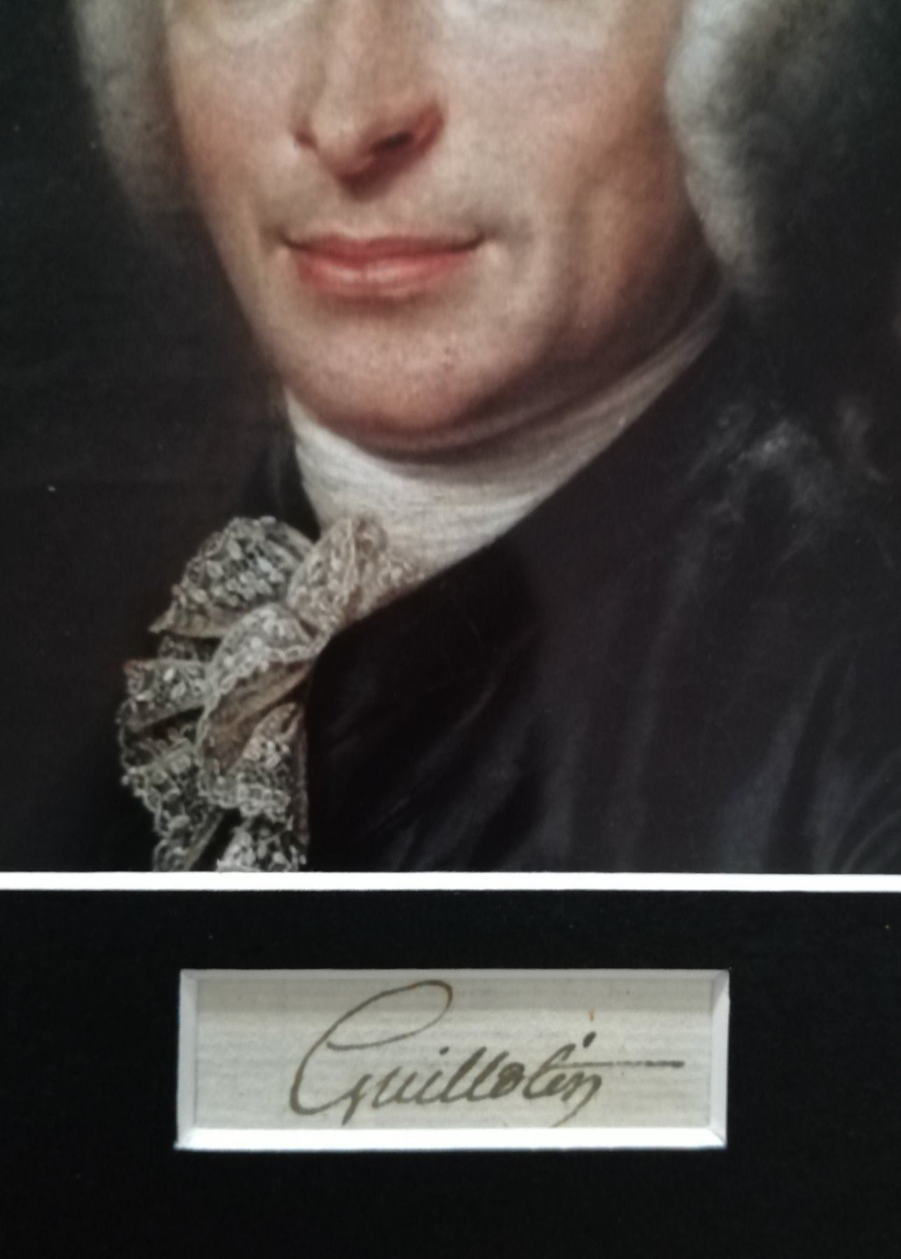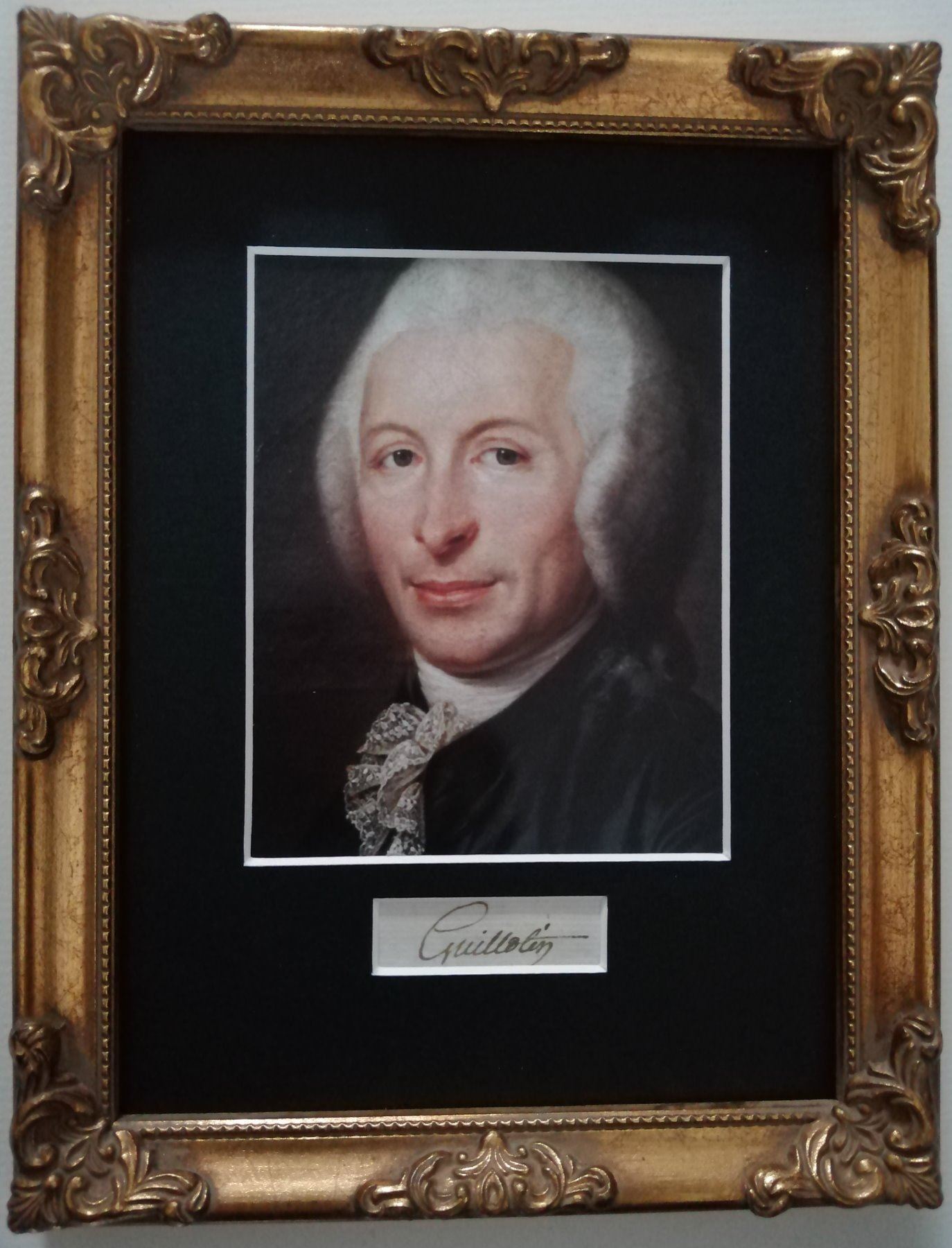 Dr.Joseph-Ignace Guillotin was a French physician, politician and freemason who proposed on 10 October 1789 the use of a device to carry out death penalties in France, as a less painful method of execution. An autograph cutting of physician Joseph-Ignace Guillotin mounted and framed in a gold coloured antique style frame. Supplied with coa.