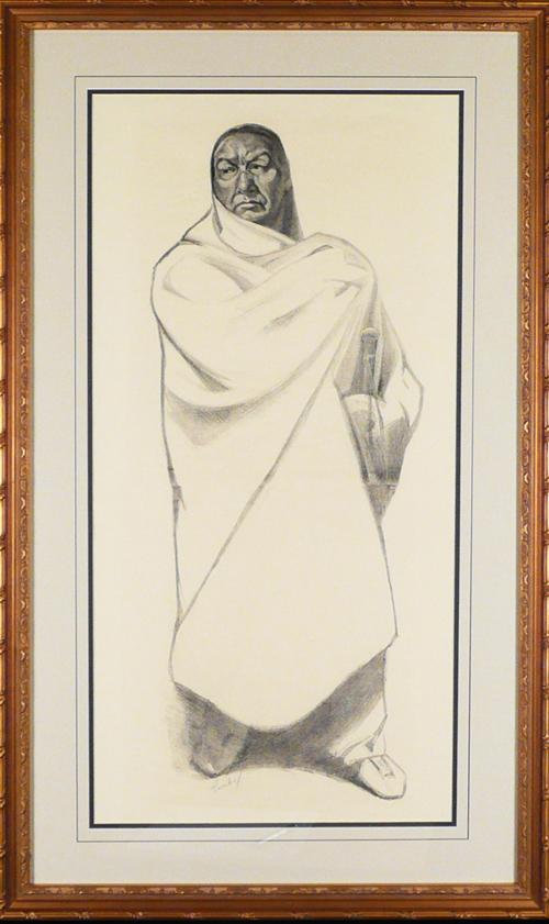 Joseph Imhoff (1871-1955) Stone Lithograph Pueblo Indian Portrait Signed lower 32" x 16" (Sale of this item will benefit Palmer Land Trust)