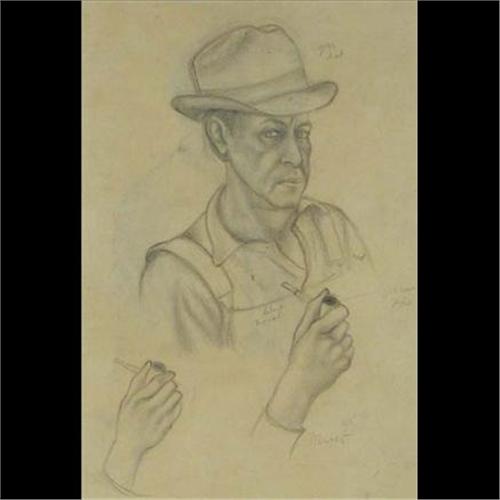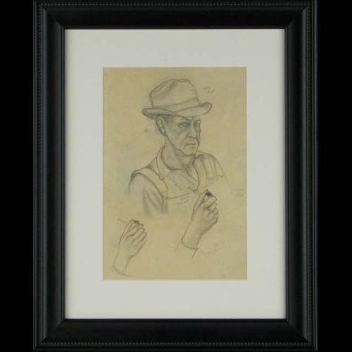 Joseph John Paul Meert (1905-1990) (Kansas) Pencil Study, Man with Pipe, 13" x 9", signed lower right, Provenance: From the Estate of Charles Ragland Bunnell