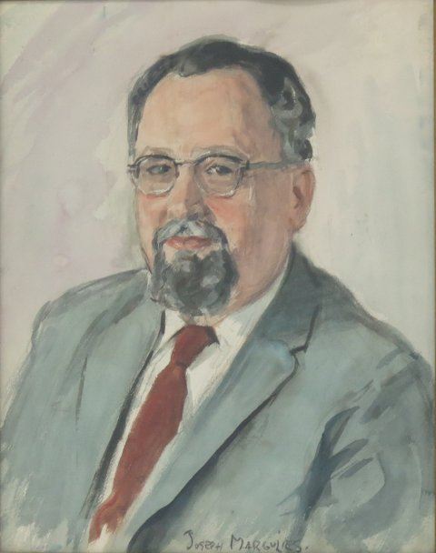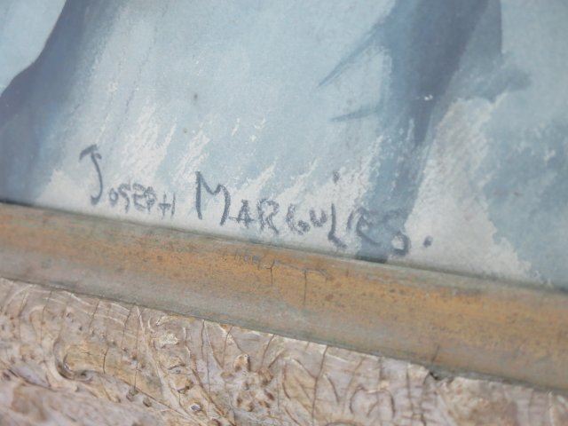 Watercolor. Framed. Signed bottom. Joseph Margulies (1896-1984). Approx. 20" x 16" unframed, 29" x 25" framed. Damages to frame.