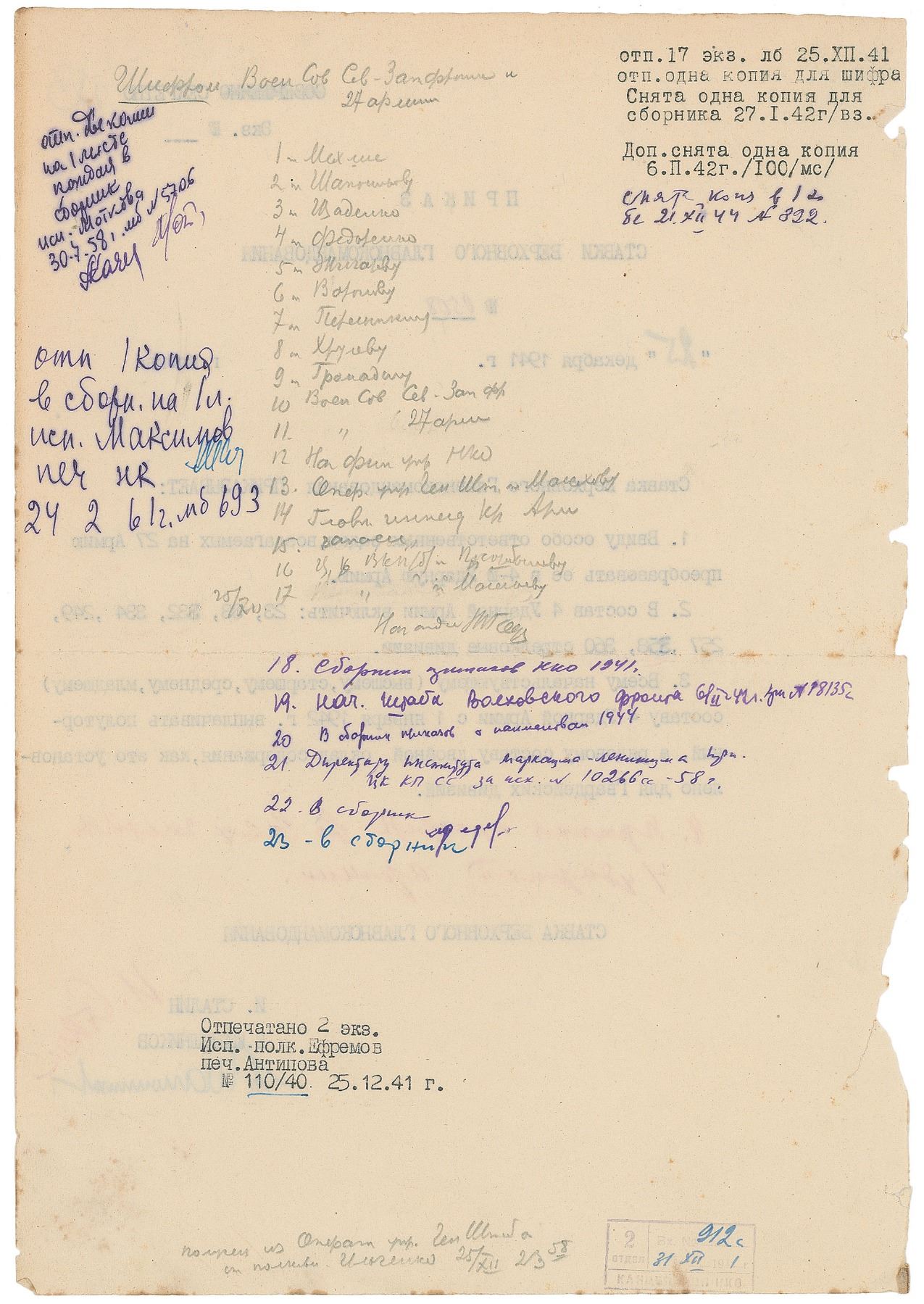 Roughly two million people had fled the Soviet capital prior to the start of the Battle of Moscow on October 2, 1941, and by November 28, the German strategic offensive, Operation Typhoon, had pushed to a mere twenty miles from Moscow city limits. But the frigid Soviet winter took its toll on the Wehrmacht, and logistical issues that prevented the delivery of warm clothing and other winter equipment soon enabled Soviet forces to exact a series of effective counterattacks. Axis soldiers began their retreat by December 5, a decision pressed upon them by a record-breaking winter that dropped to temperatures of –20 °F. An immensely desirable document signed in the final days of one of World War II’s most significant conflicts.