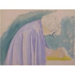 MEDITATION, watercolor on paper, 18 x 24", signed lower right, framed, soft creases, kinks and a tiny tear at sheet edge. Provenance: American Masters Gallery, Los Angeles. $4000/6000
