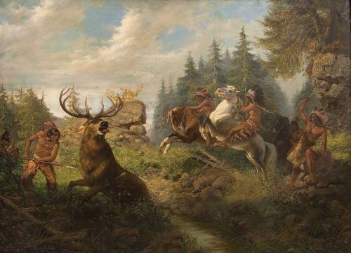Joseph Tomanek (1879-1974). 42" x 58". Oil on Canvas. "Hunting Scene". Signed LL. (est $8,000-12,000). Provenance: MAC Museum, Spokane, Washington.