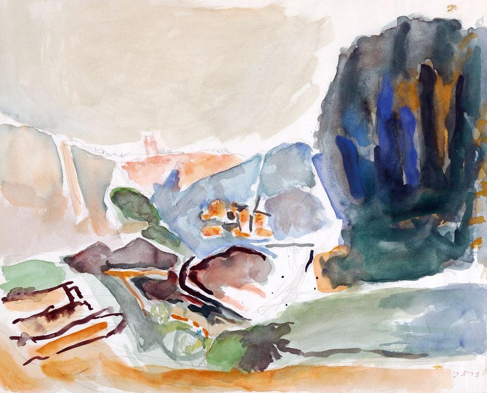 Joseph Zaritzky, Israeli Art, 1891 - 1985, Tzuba, Watercolor, 43x52cm, Signed., , , , ,